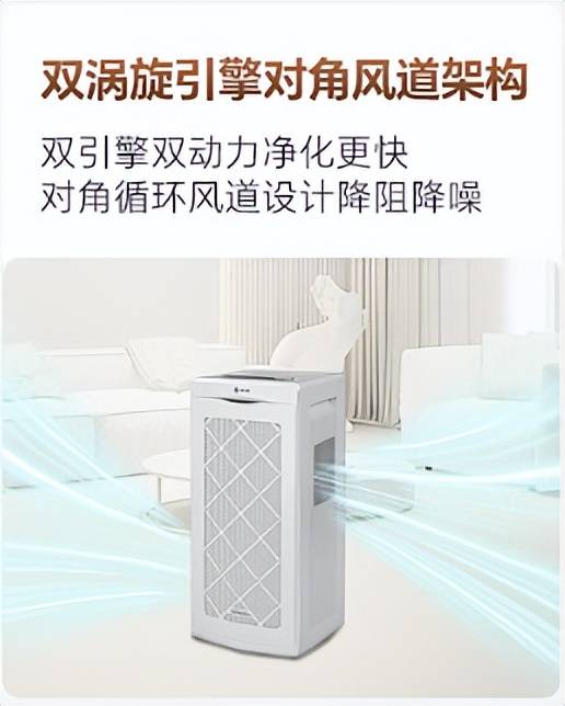 新颐A8的无死角底气,源于其创新的双涡旋对角风道设计,区别于传统单风机单向出风,它实现了“立体循环+全域覆盖”的净化革命: