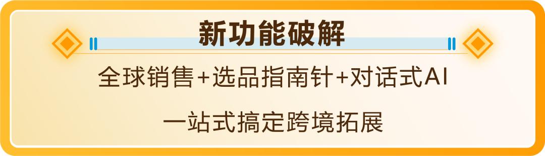 升级版“全球销售”页面+选品指南针,叠加2026年即将上线的对话式AI功能,从商机评估到合规配送,全程AI护航,解决全球拓展的所有难题: