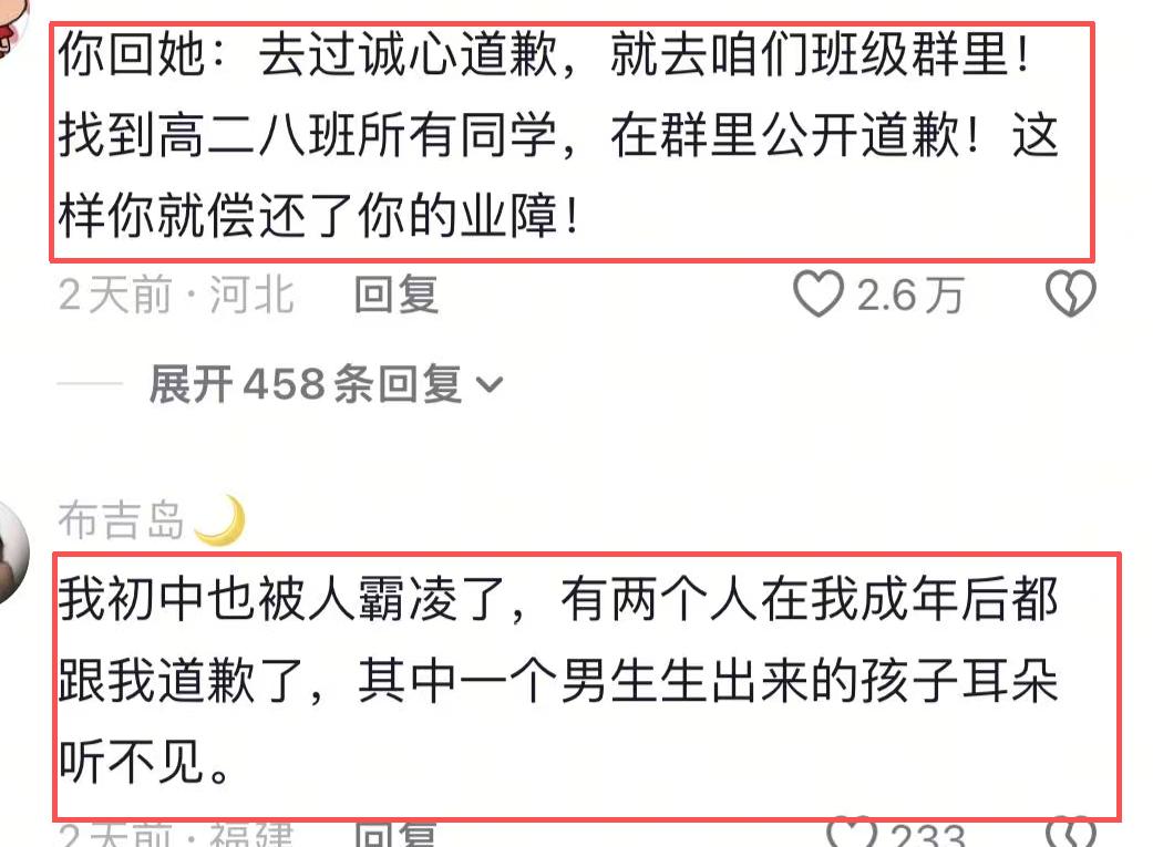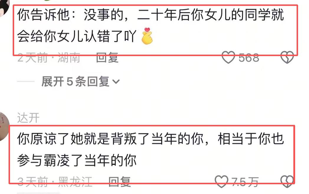 还有网友说:“你原谅了她,相当于背叛了当年的你,相当于你也参与霸凌了当年的你。”