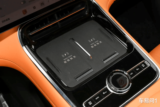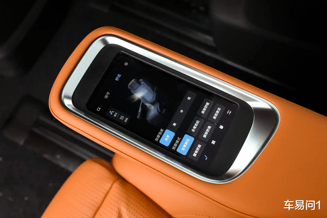 从座舱中来看,吉利银河V900在中控台还是分为了上中下三层立体结构,并在上层提供了与尾灯造型呼应的出风口、在中下层带有隐藏式氛围灯,而通过中下层与门板装饰相融,这里也有比较强烈的环抱效果。此外,D型方向盘、15.4英寸悬浮触控屏,还有门板扶手结构与翼真L380是相同的。但副仪表台已经从后者的“司机式”高台布局结构,重新设计为了双层贯穿设计,其上层带有双无线充电板+多功能物理控制台,下层也提供了掏空储物格,样式上其实是更主流的,也能让家庭用户更适应。