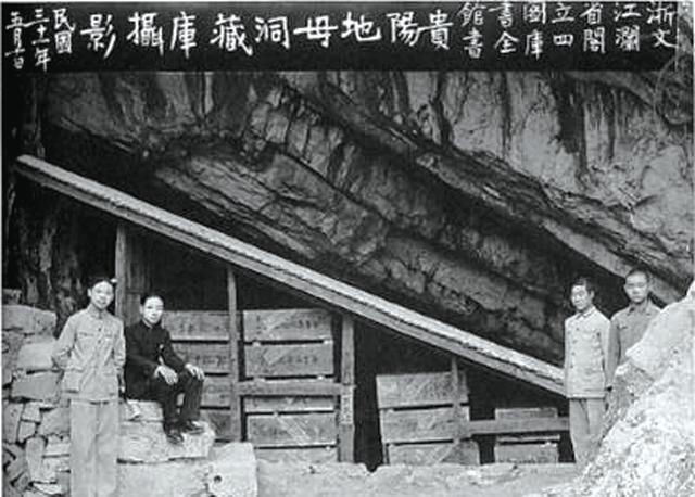 然后到了贵阳之后呢,先存放在这个贵州省的图书馆,后来一看图书馆条件不行,就挪到了贵阳,一处叫张家祠堂,这地方有藏书楼。但是之后敌人又开始对西南地区进行空袭,说这也不行。这时候就有人说,贵阳郊外半山腰上,有个地母洞不错,那个地方一般轰炸怎么炸也不会弄到那去了,咱挪那去了,就这么的把这书的全运到这个洞里。