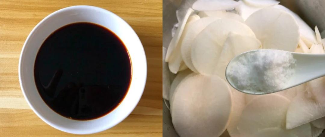 食材:一根白萝卜、20 克蒜头、20 克生姜、4 个小米辣,再加上 1 勺盐、5 勺生抽、3 勺醋、1 勺白糖和半碗纯净水。