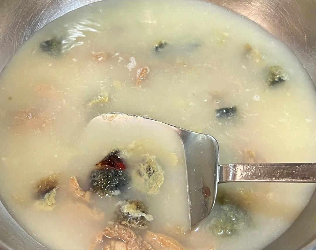 一碗鲜掉眉毛的枸杞芽皮蛋瘦肉汤就大功告成啦!家人们赶紧试试,保证让你喝了还想喝!
