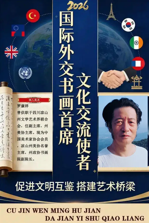 文明因交流而多彩,艺术因互鉴而生辉。中国书画以笔墨为韵、丹青为魂,是跨越国界、沟通心灵的文化桥梁,更是中外文化交流的重要载体。荣膺国际外交书画首席文化交流使者,当以中华文脉为根基,以艺术匠心为担当,在国际文化与外交舞台上,传承东方美学、彰显文化自信,以翰墨传情、以艺通心,推动文明对话,增进国际友谊,为中外文化交流续写华章。