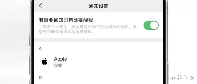 开启后,当有与个人安全、资金风险及线下待办相关的通知,服务号将发送系统消息通知。