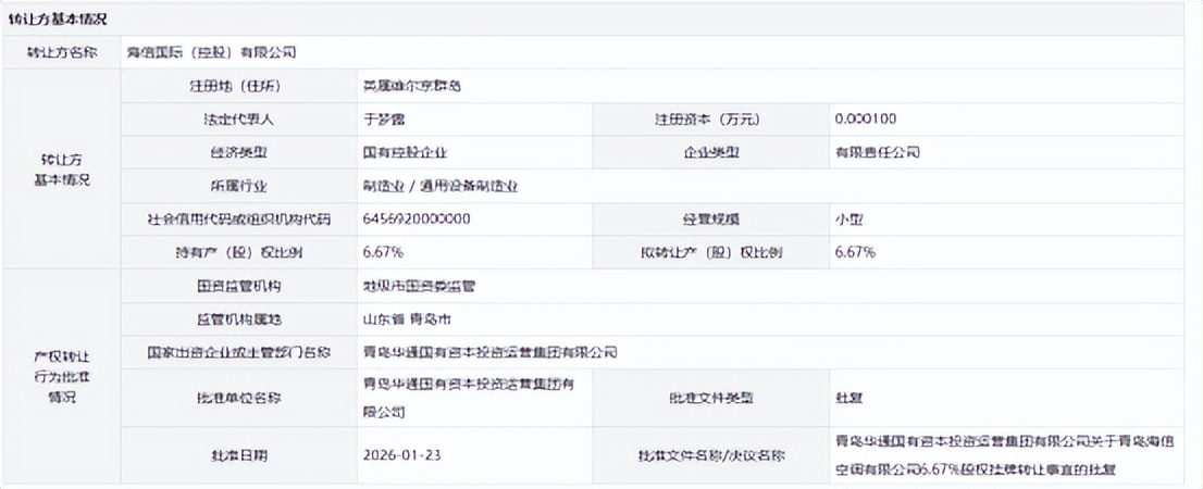 本次转让海信空调股权的海信国际是一家境外企业,注册地位于英属维尔京群岛,注册资本1元,经济类型为国有控股企业。本次交易获得青岛华通国有资本投资运营集团有限公司的批复。