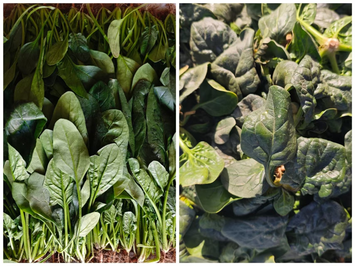 万邦农产品批发市场南方长杆儿菠菜和河南“趴地菠菜”对比图