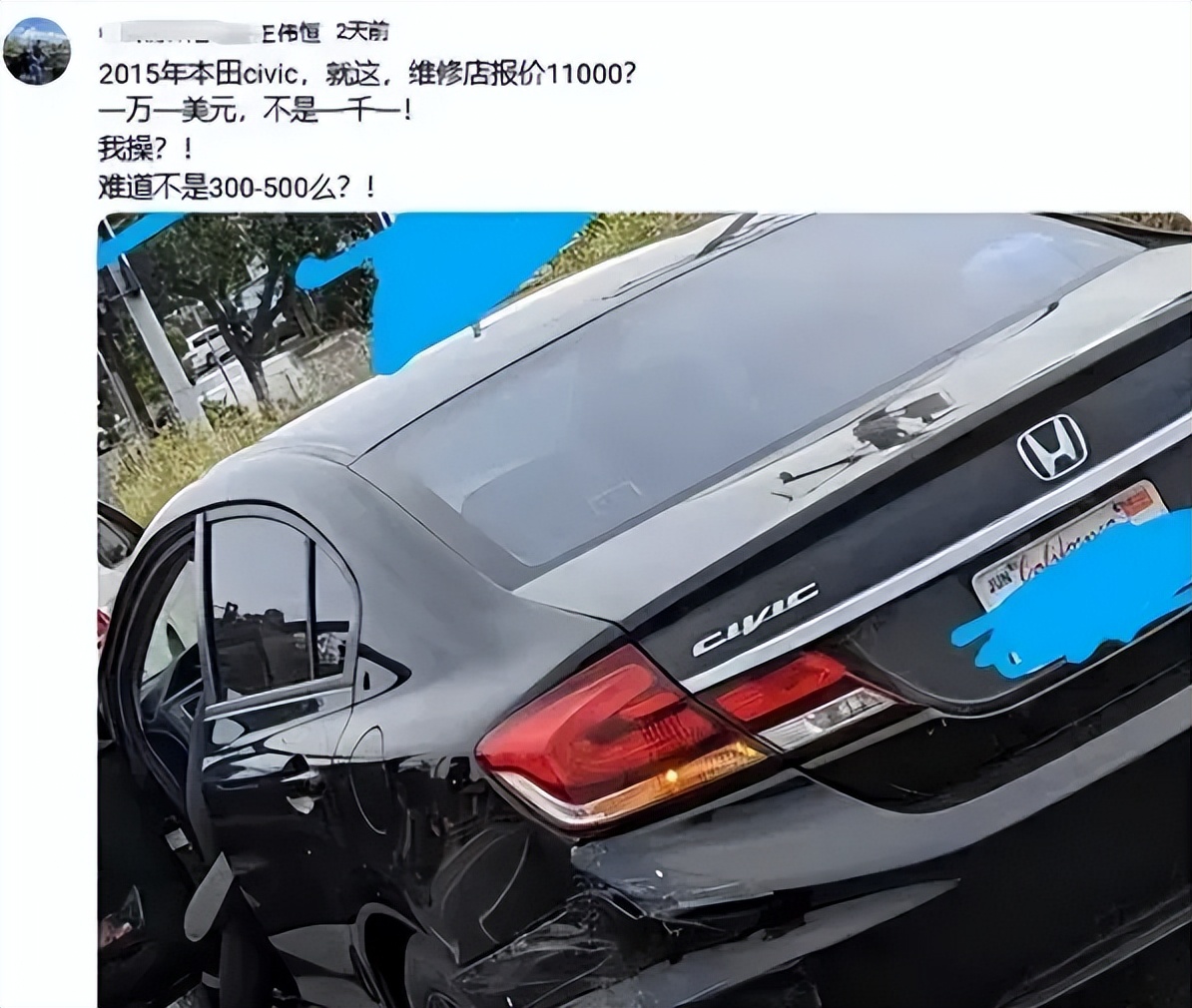 结果不小心轻轻追尾了一辆新车(那车本身也就值2万美元),对方竟然要他赔1.1万美元的补漆费!