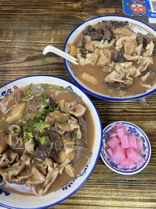 卤煮火烧料很扎实,肠、肺、肚炖得够透,吸满卤汁香,火烧泡软后入味不烂。配上蒜蓉辣酱,越吃越香。