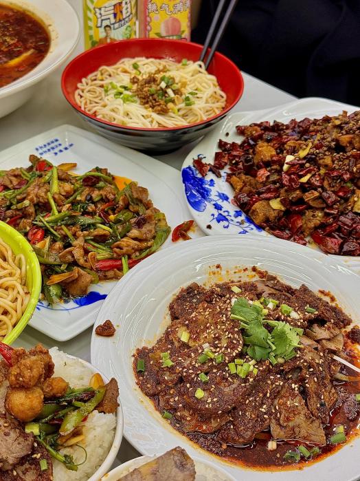 水煮肉片麻辣鲜香,肉片滑嫩无柴感,豆芽和生菜吸满汤汁。麻婆豆腐咸香够味,拌米饭能炫两碗。