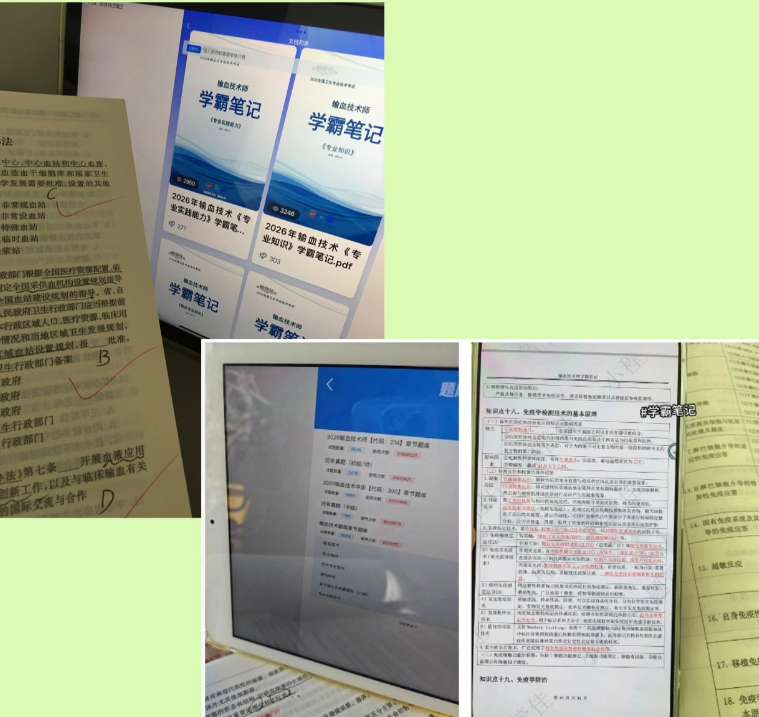 拒绝盲目跟风:不盲目购买大量教材和资料,认准官方指定教材(《输血技术》)和同步习题集),另外再准备一个电子题库用来搭配人卫习题刷题练习,如果基础差,可以再准备一套“学霸笔记”用来前期基础内容的学习,避免资料繁杂导致精力分散;不追求“刷完所有题”,重点在于“吃透考点、掌握方法”。