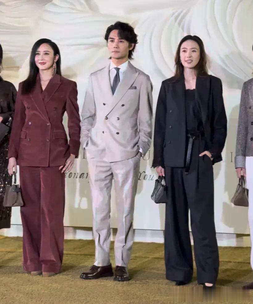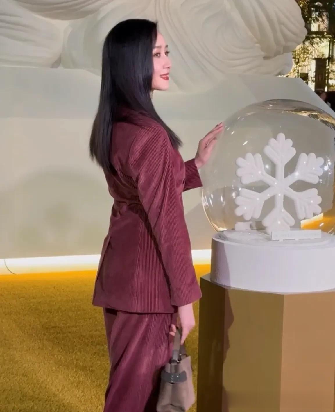 47岁的她,状态好极了,一身暗红色丝绒套装,搭配大红唇,让她看上去贵气十足,神采奕奕。