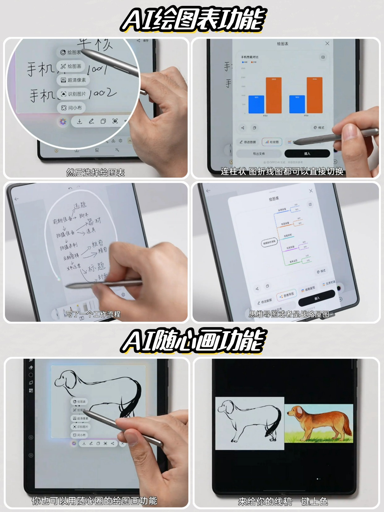 不过最让我眼前一亮的还是AI绘图表和AI绘画功能。前者只需将关键信息、参数列个大概,再长按AI手写笔进行圈选即可实时生成对应的表格、树状图、思维导图;后者则能基于画的草图,根据写实、3D等不同风格生成对应质感的画作,人均小画家说是。以往这些在电脑上搞半天才能出来的东西,OPPO Find N6搭配AI手写笔一分钟不到就搞定了,你就说有没有买它的必要?