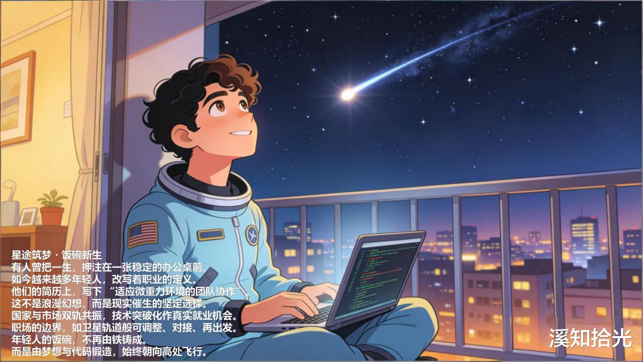 当公务员考试报名人数一年比一年多,铁饭碗曾经成了安稳人生的代名词,这会儿,那些仰望星空的年轻人开始觉得,真正的安全感,可能不在办公室的格子间里,而在星辰大海的征途上。