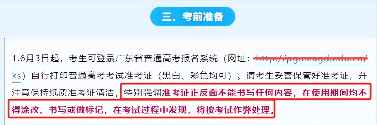 此外,从2024年高考开始,广东考前提示就新增了一项:高考准考证正反面不能书写任何内容,在使用期间均不得涂改、书写或做标记,在考试过程中发现,将按考试作弊处理。