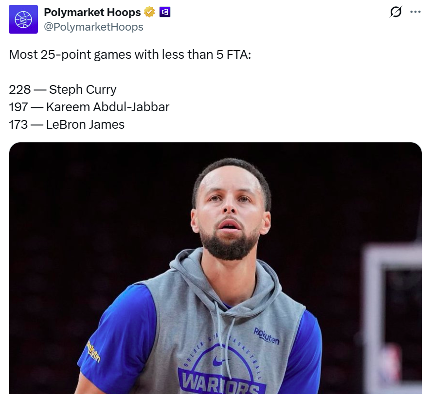 同时这是库里生涯第228场在罚球少于5次的情况下,单场至少拿下25分,继续高居NBA历史第一,贾巴尔以197场排在第二,詹姆斯173场排名第三。