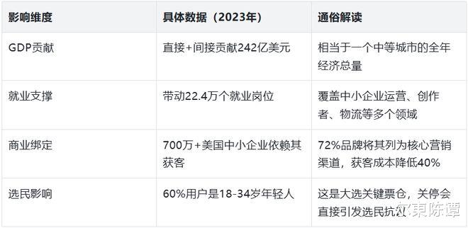 核心原因只有一个:它早已不是“一家中国公司的产品”,而是美国社会的一部分。封掉它,先炸的是选票、就业和GDP,政治成本高到美国政府承受不起。
