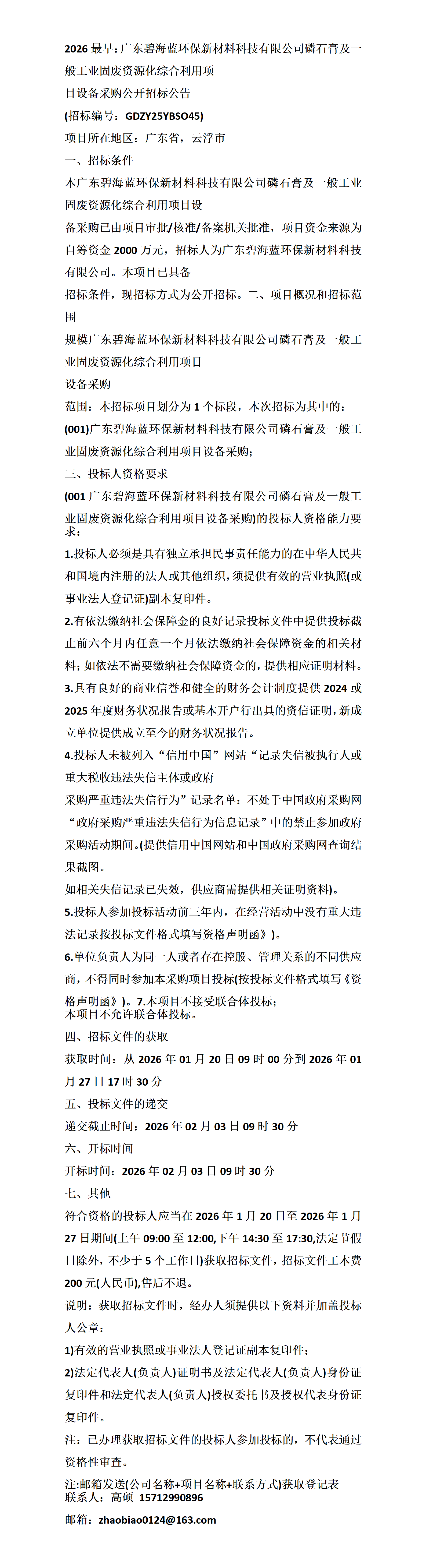 2026最早:广东碧海蓝环保新材料科技有限公司磷石膏及一般工业固废资源化综合利用项