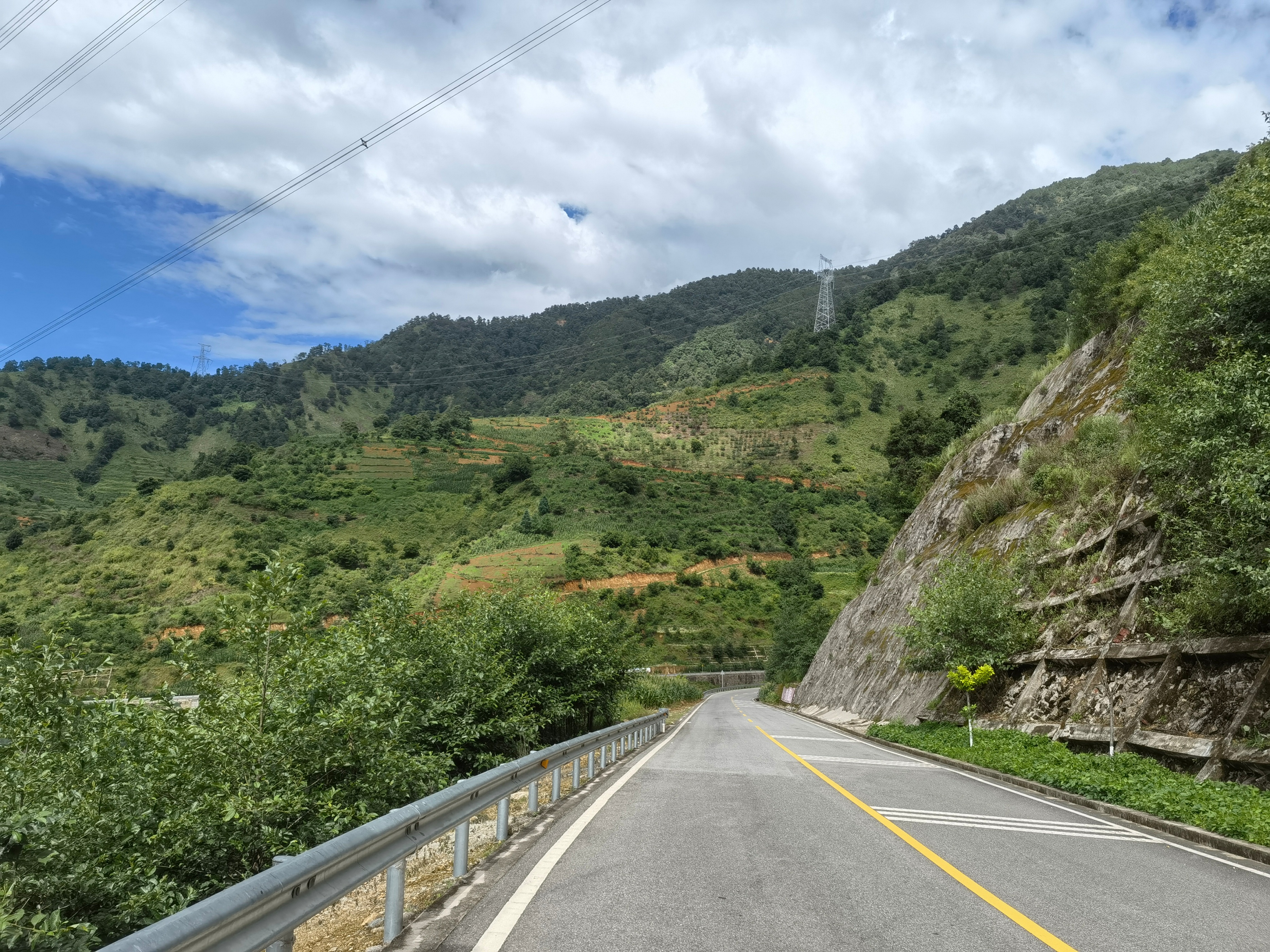 一出德昌县城新铺筑的油路让我们精神一振,想象中的大坑小凼没出现在车轮下,全是机拌机铺的沥青路面,标线标志十分清晰。这样的好路不是一段,而是全程,直达茨达、直达山顶。