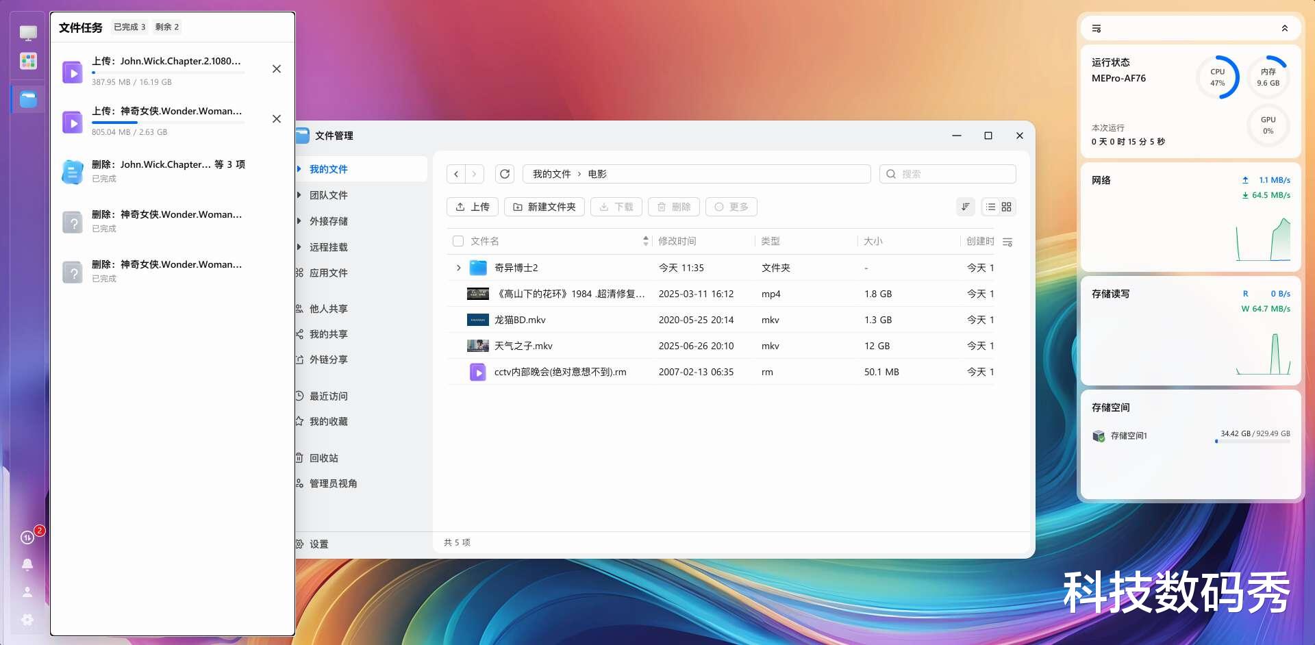 至于电脑端和零刻ME Pro的文件传输,你可以直接在浏览器里飞牛OS文件管理里面直接上传下载,也可以下载飞牛同步客户端,完成本地和NAS之间的双向同步。