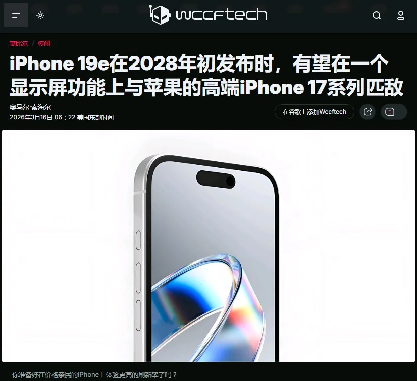 但这也意味着,明年的iPhone 18e大概率还是无缘高刷。