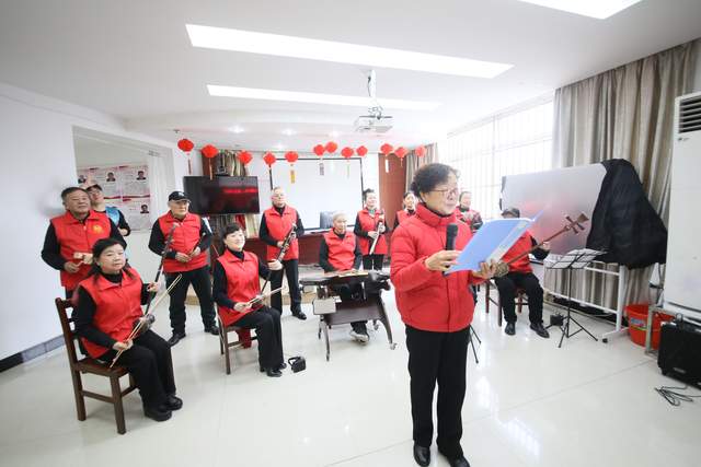 随后,迟腊梅带来的二胡独奏《挡不住的思念》,以悠扬深情的音色勾勒出绵长的牵挂,琴弦流转间,每一个音符都直抵人心;徐春的男声独唱《祖国》,歌声雄浑有力,字里行间满是对祖国的赤诚热爱,赢得阵阵掌声;屠瑾的女声独唱《我把故乡比苏杭》,婉转的歌声如清泉流淌,将江南水乡的柔美与对故乡的深情完美融合,让在场居民沉醉其中。节目轮番上演,精彩不断,宋忠芳的电吹管独奏《我爱你中国》,用独特的音色诠释着对祖国的无限眷恋;屠瑾与徐玉南携手演绎的表演唱《我唱赞歌献祖国》,深情的演绎将整场演出推向高潮,歌声中饱含的热爱与感激,让不少居民热泪盈眶。