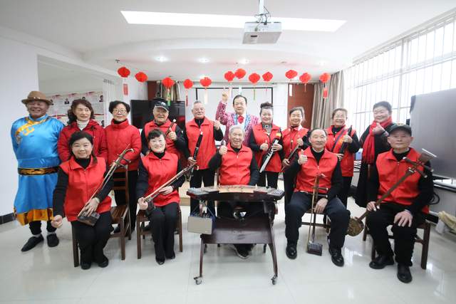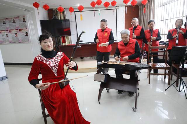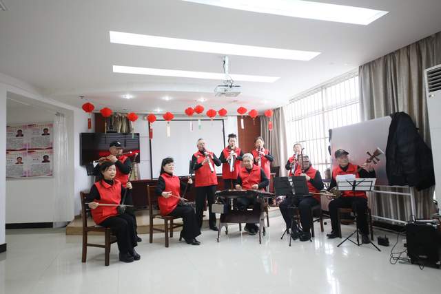 联欢会在徐玉南老师组织的爱心乐队恢弘激昂的器乐联奏中拉开帷幕,《心中的歌儿献给金珠玛》《洗衣歌》《阿瓦人民唱新歌》《北京的金山上》四首经典曲目接连奏响,熟悉的旋律瞬间点燃现场氛围,二胡、笛子等乐器交织共鸣,时而婉转悠扬,时而高亢奋进,引得台下居民纷纷跟着节奏轻轻哼唱,眼中闪烁着感动的光芒。