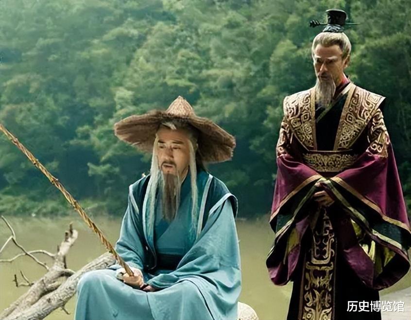 商末,姬昌在渭水岸边发现姜子牙用直钩无饵钓鱼,识破其“愿者上钩”的用意,认定此乃大贤,请姜子牙出山辅佐。