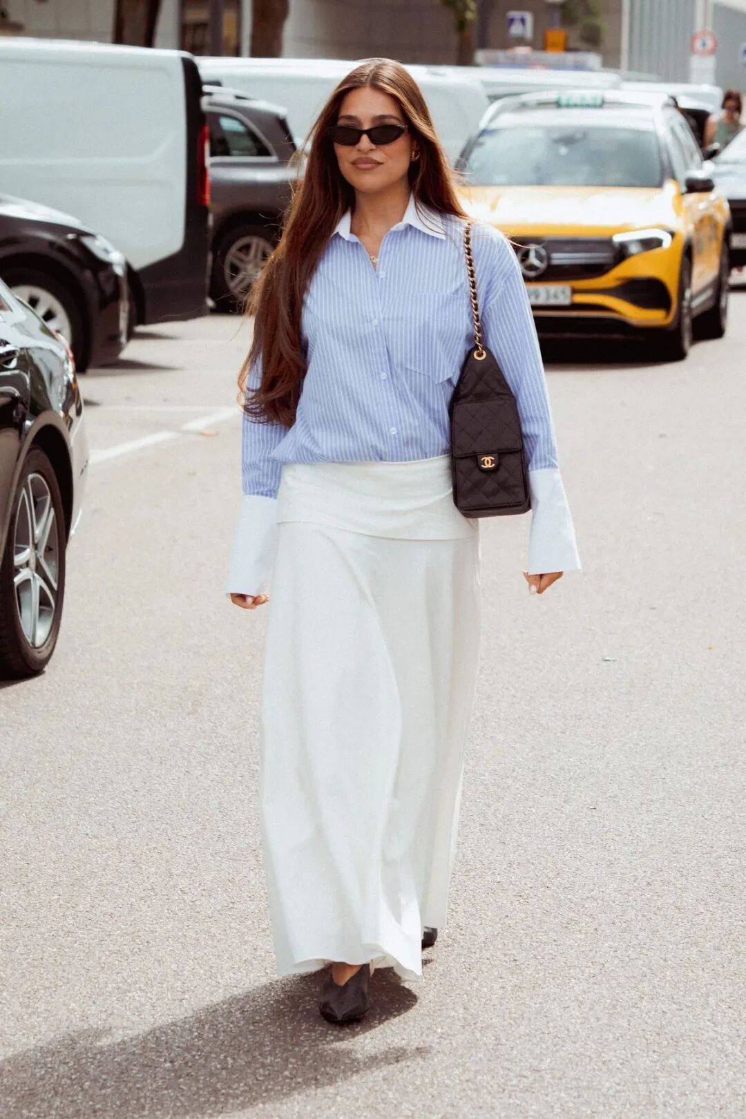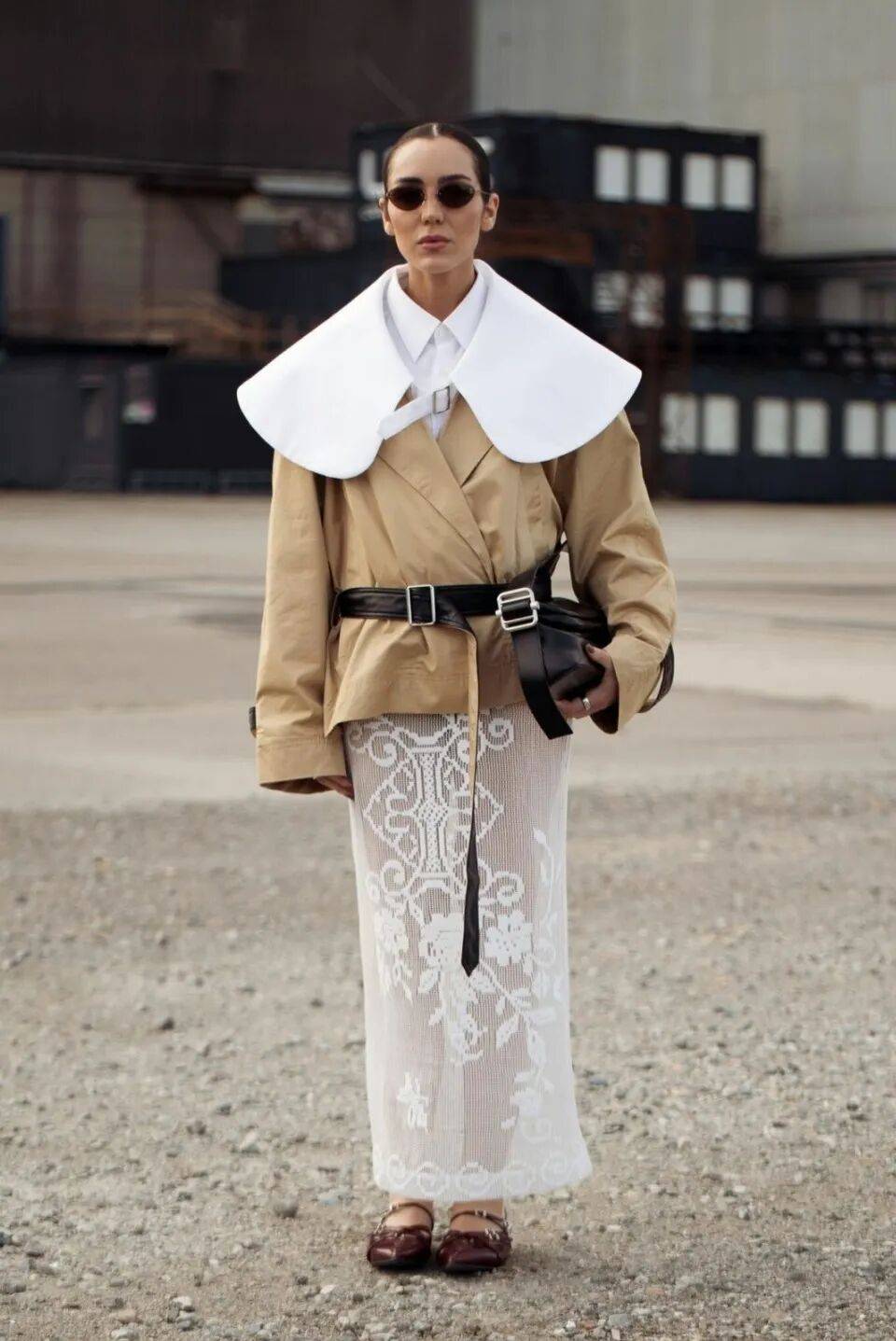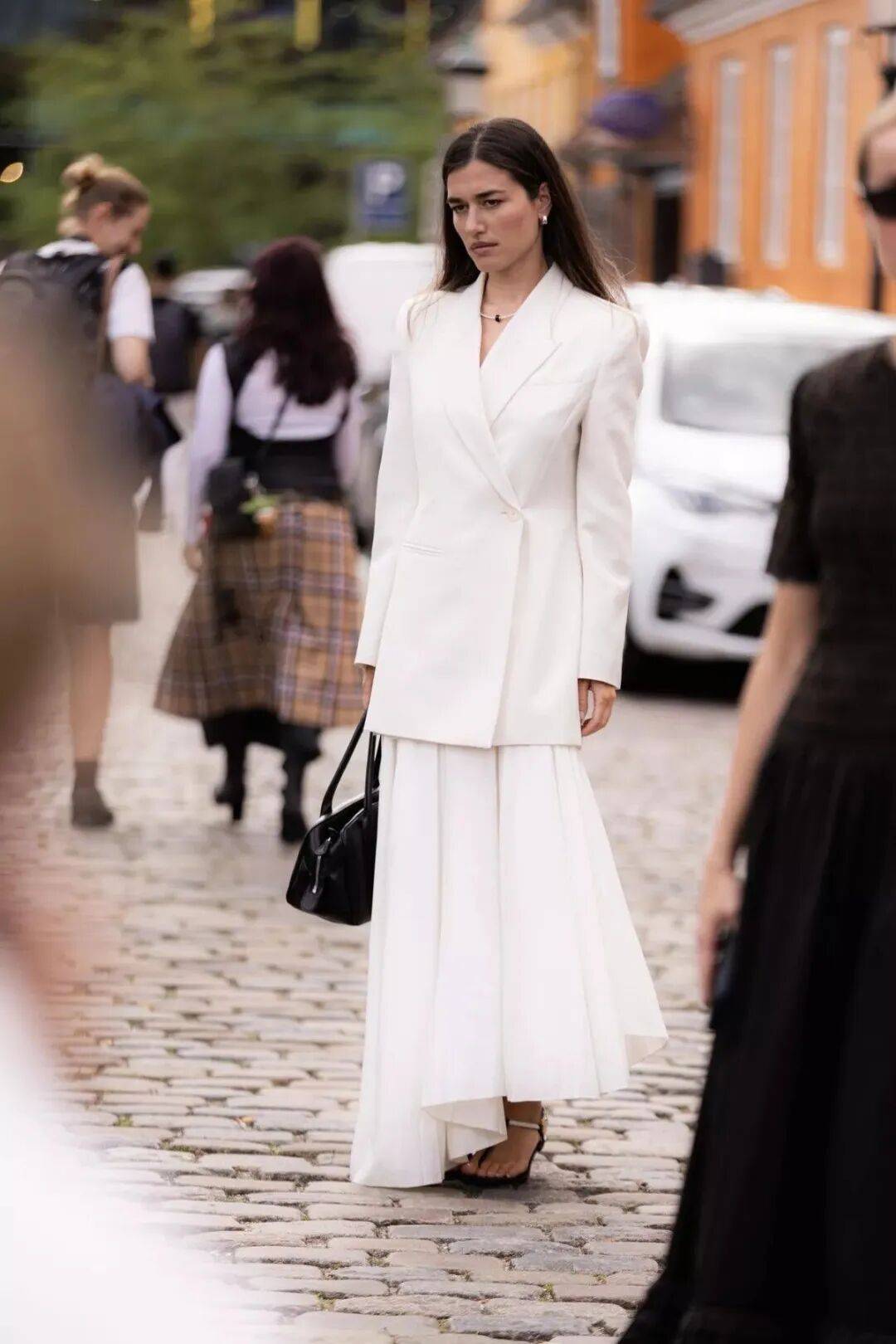 尤其是当棕色等深沉厚重的颜色、渐渐成为街头的主角,那份由白色半裙带来的轻盈,恰好为秋日的厚重感注入灵动,让人看到一种安静而自在的平衡。