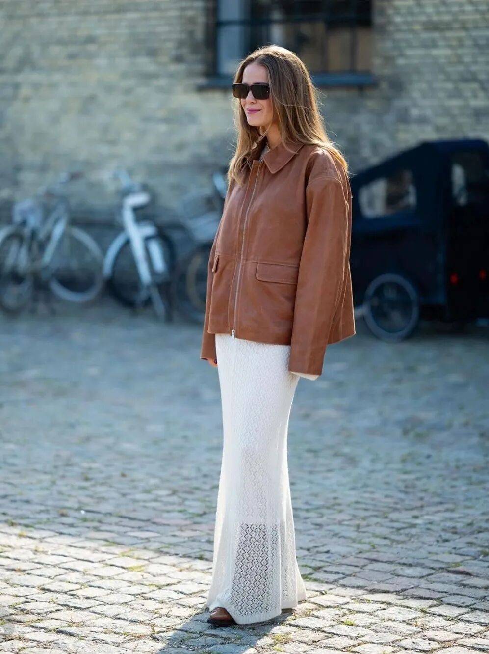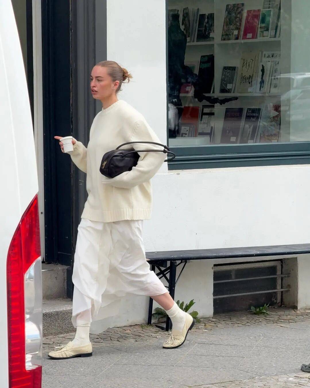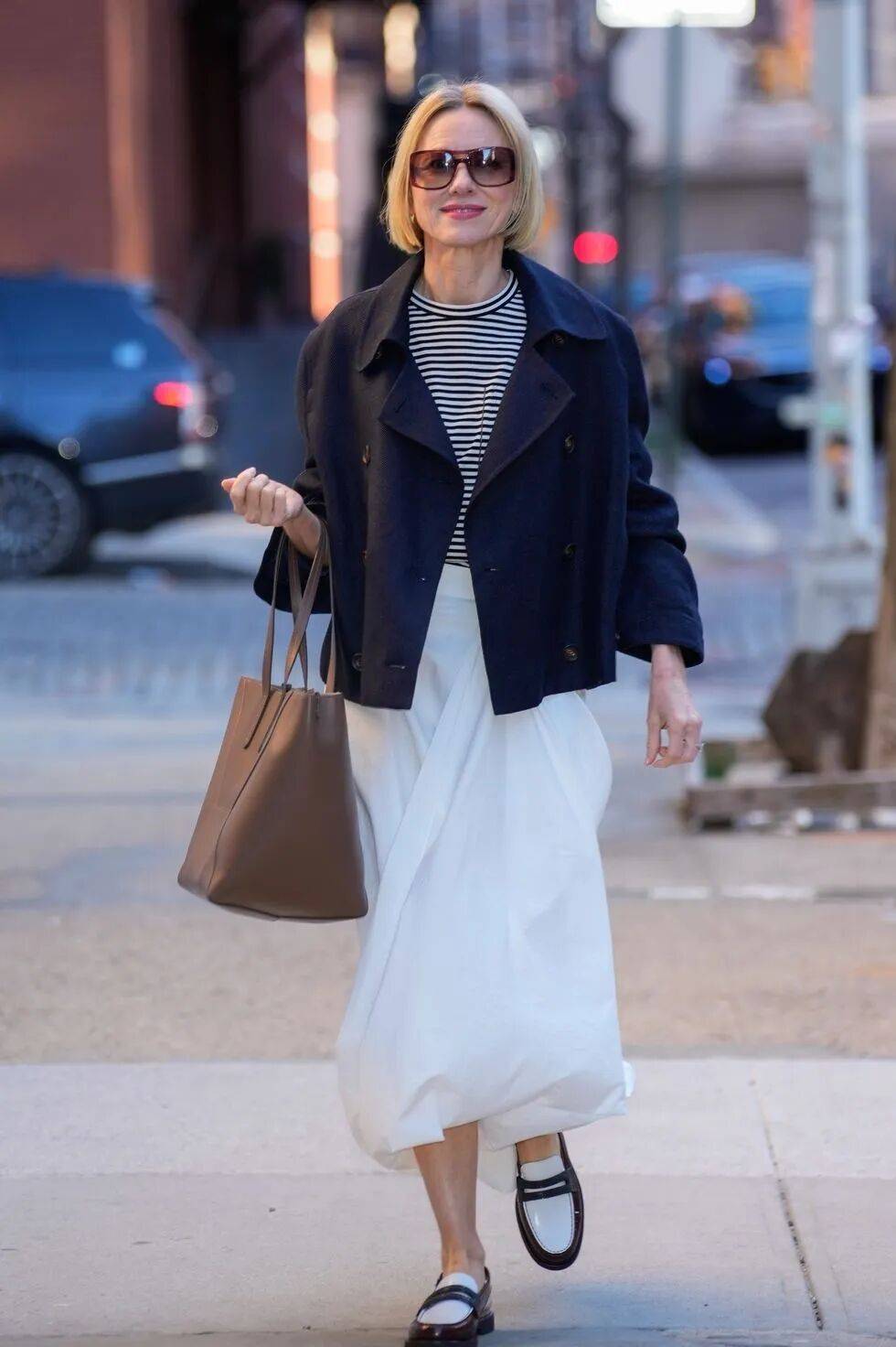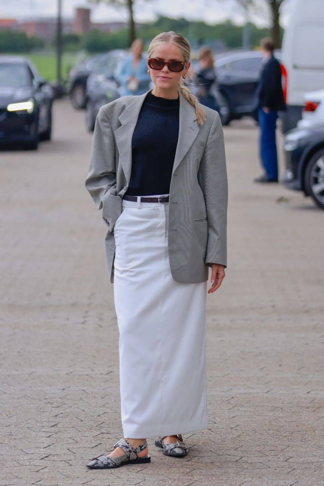 尤其是当棕色等深沉厚重的颜色、渐渐成为街头的主角,那份由白色半裙带来的轻盈,恰好为秋日的厚重感注入灵动,让人看到一种安静而自在的平衡。