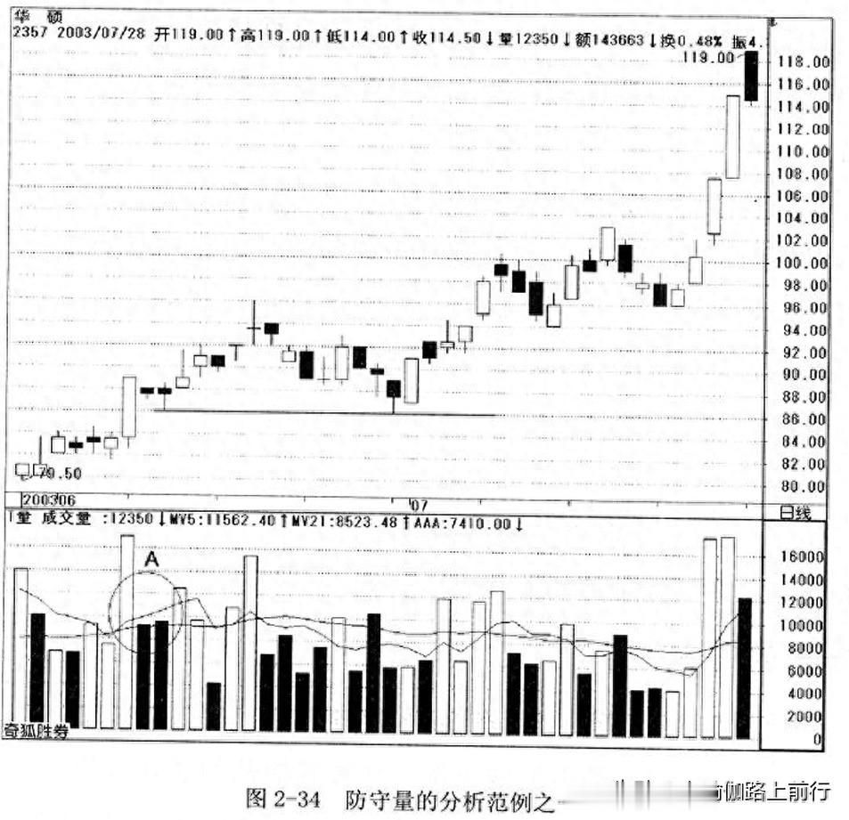 (3)出现防守量时不需要注意均量的走向,亦与K线红黑无关;