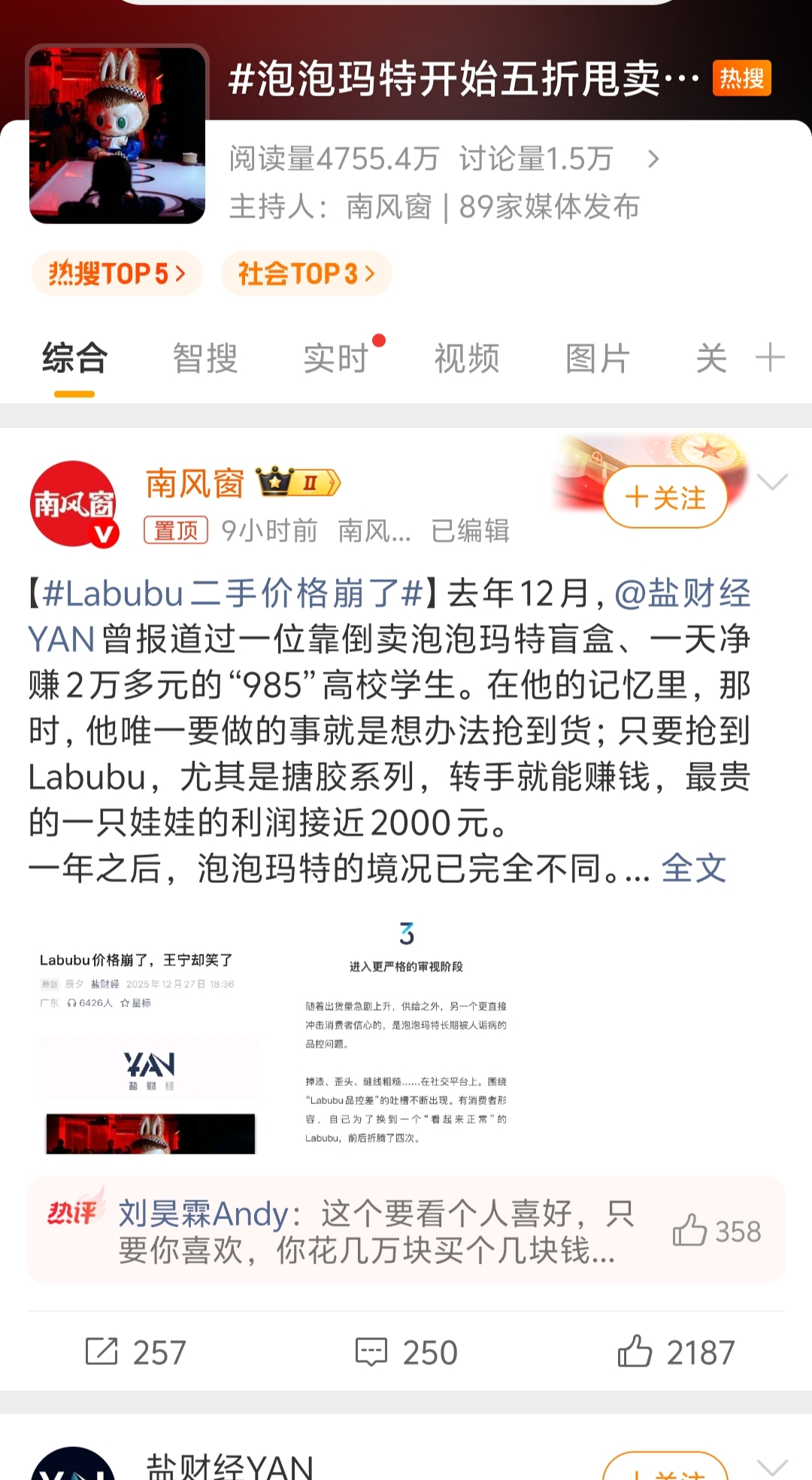 这场五折风波倒是让不少人重新开始打量盲盒这玩意儿。有人算了笔账,一年花在盲盒上的钱够买个好手机了,顿时觉得不值。也有人觉得,三十块买个开心还是挺划算的,毕竟情绪价值也算价值。商场里折扣区总是围满了人,有真心想买的,有纯粹看热闹的,还有黄牛在掂量有没有倒卖空间。