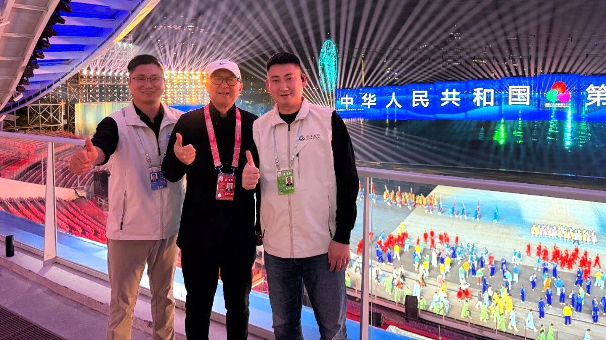 全运会闭幕式舞美总设计孙天卫与 LEOX建业显仕的技术人员