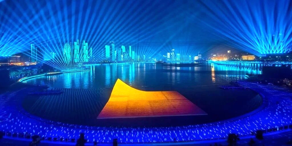 数月磨炼,只为“万众瞩目”的精彩呈现本届全运会闭幕式最大的亮点是,第一次把闭幕式搬到滨海实景舞台,进行陆域看台与水域舞台的创新融合设计,形成海天一色的自然景观,是全球首个“城市全景闭幕式”。