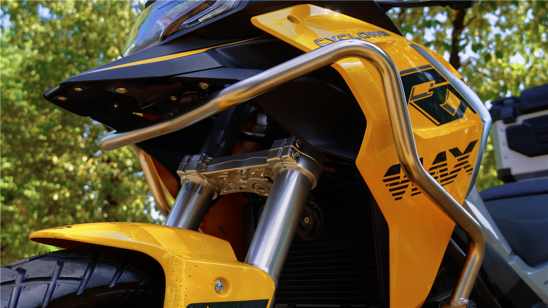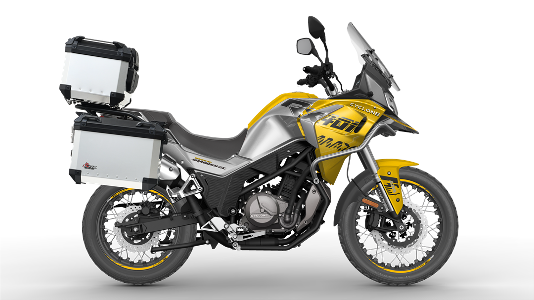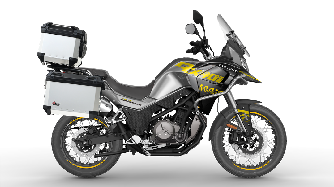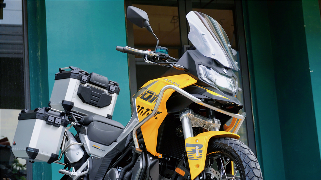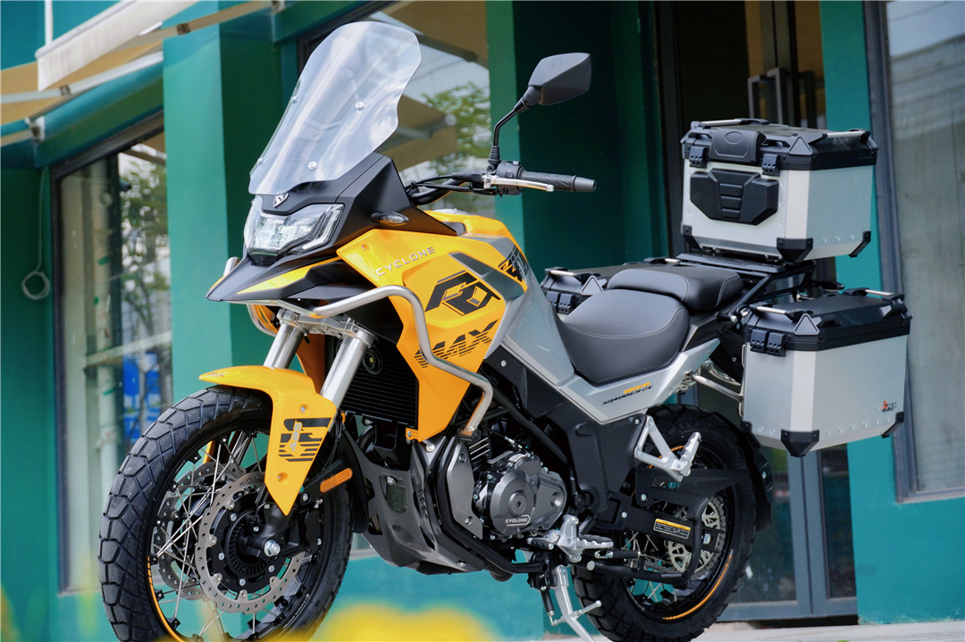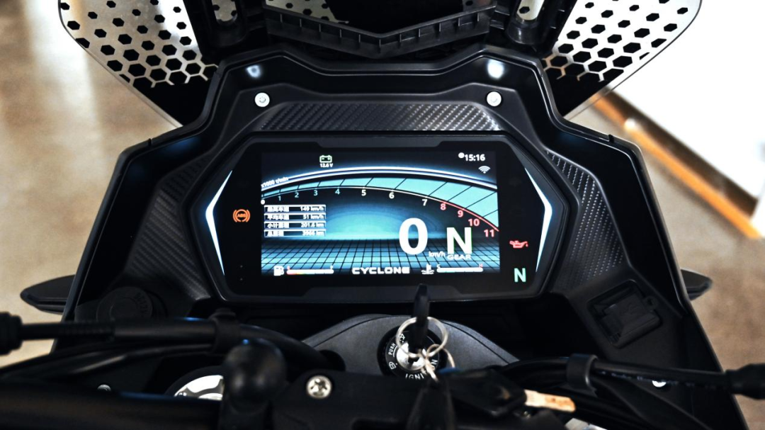 去年摩博会首次亮相的赛科龙RX401,前不久也真是迎来了上市,旗舰版价格29980元,智慧版31980元,两个版本主要区别在TFT仪表以及OBD车机APP上,都是使用了前19寸后17寸真空辐条轮,新车上有带三箱公告,但是铝合金三箱需要选装,价格3000元。原厂车身护杠以及发动机护板也都有配置,这一点还是不错。
