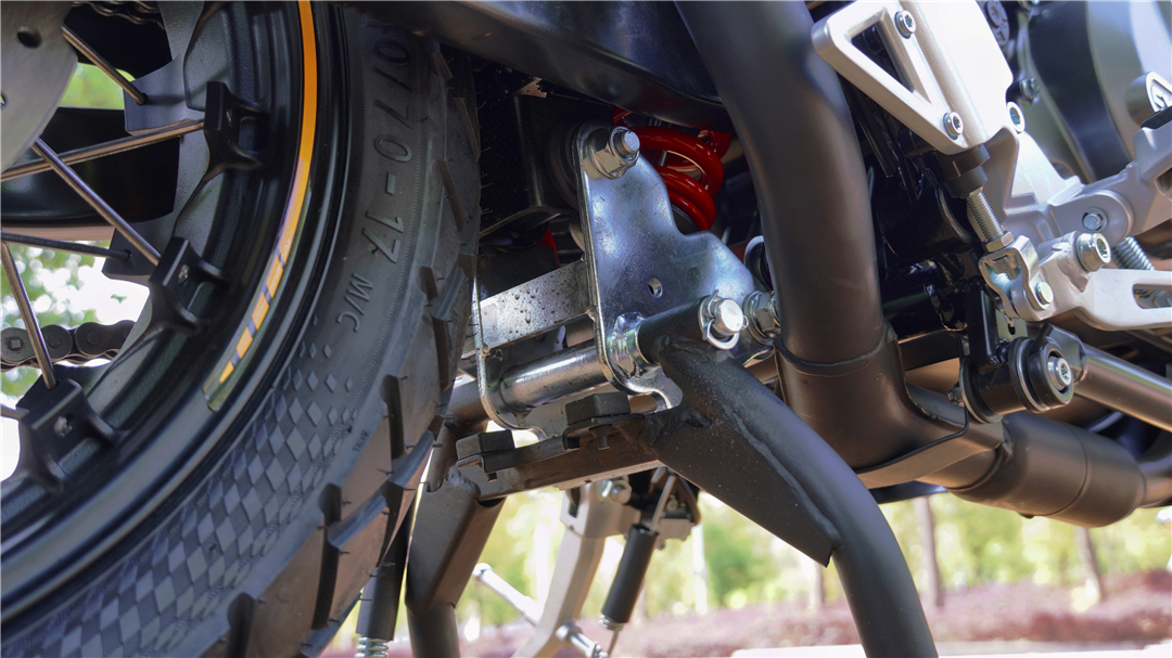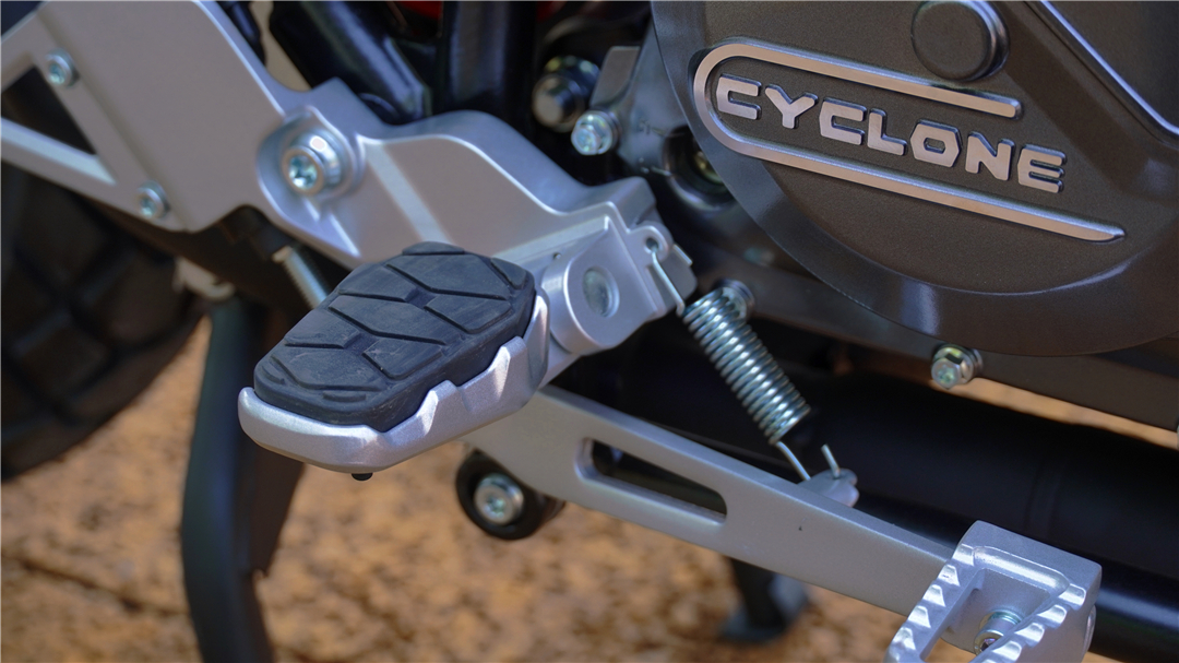 前后脚踏以及侧边撑均为铝合金材质,并且脚踏上的胶垫采用了可拆卸设计,越野场景使用更安全。