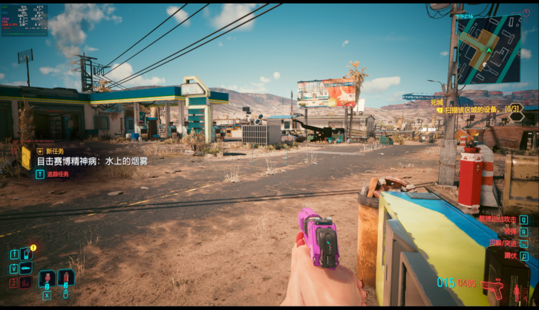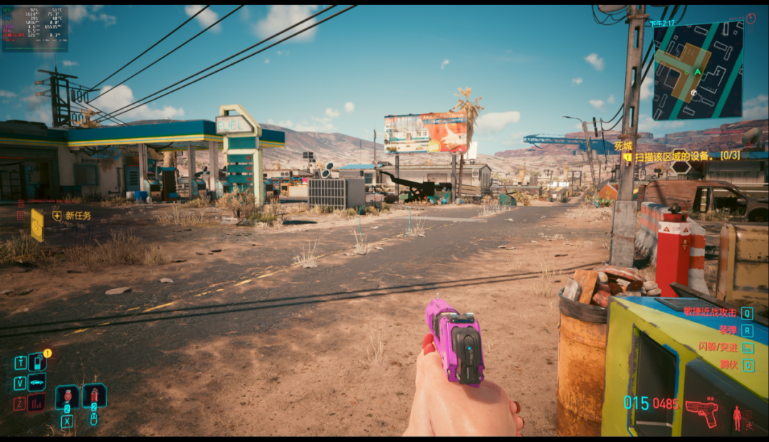 ▲在16GB内存、1080P+高画质设置下,玩《赛博朋克2077》的系统内存占用大概6.5GB左右(平均121fps)