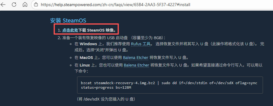 这里我们用来举例的SteamOS是针对SteamDeck的官方版,版本为3.7.7,不是第三方魔改版。因此,它只能支持搭载AMD处理器和GPU的平台,如果你使用了Intel处理器或者NVIDIA显卡,那就只能选择对应的第三方魔改版。此外,虽然Steam Machine游戏主机已经公布,但在没上市之前我们也拿不到针对Steam Machine的SteamOS镜像,所以只能使用针对SteamDeck的版本。