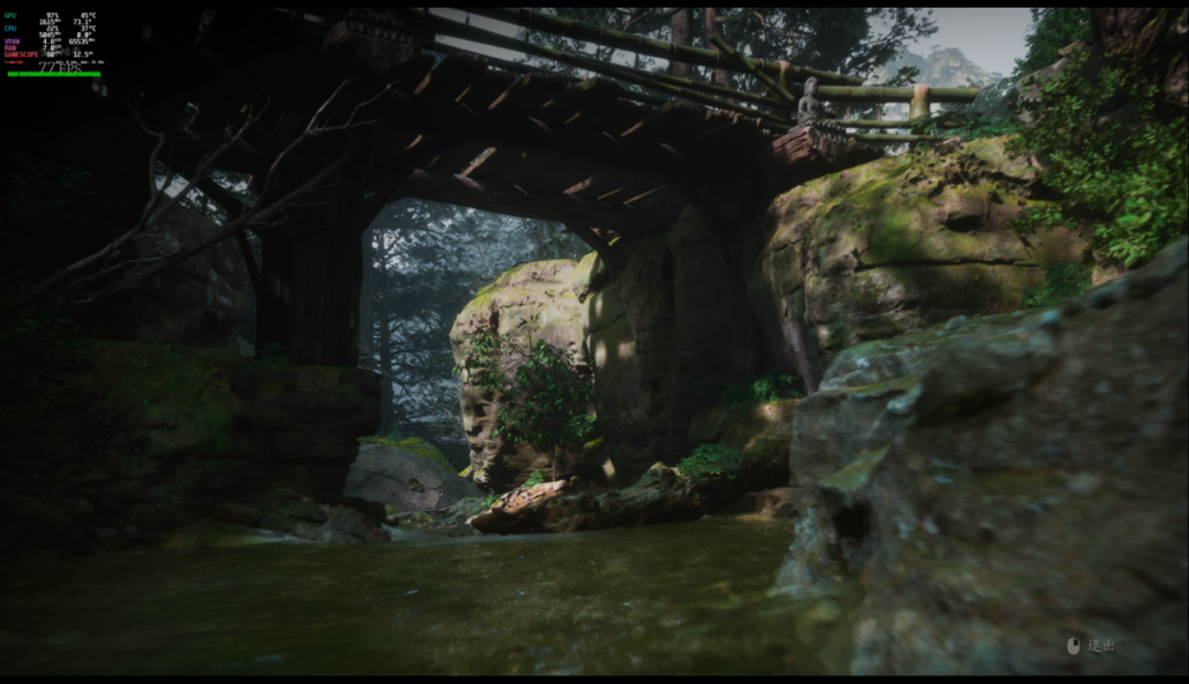 ▲在16GB内存、1080P+高画质+FSR+帧生成设置下,《黑神话:悟空》的系统内存占用大概6.9GB左右(平均78fps)
