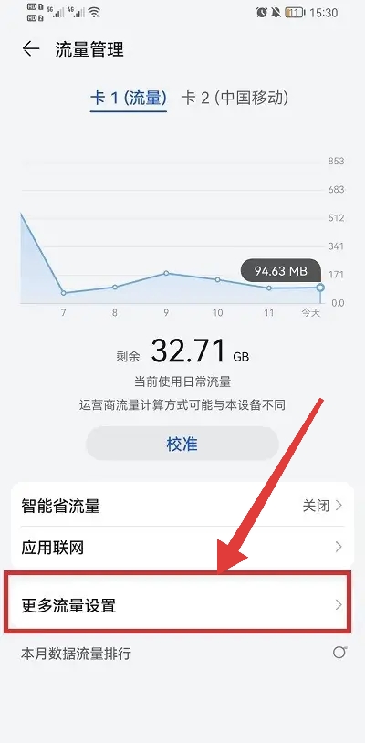 3.进入到流量管理页面后,选择点击【更多流量设置】。