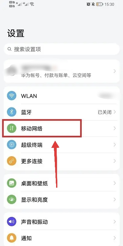 首先打开手机的设置页面,选择【移动网络】点击进入。
