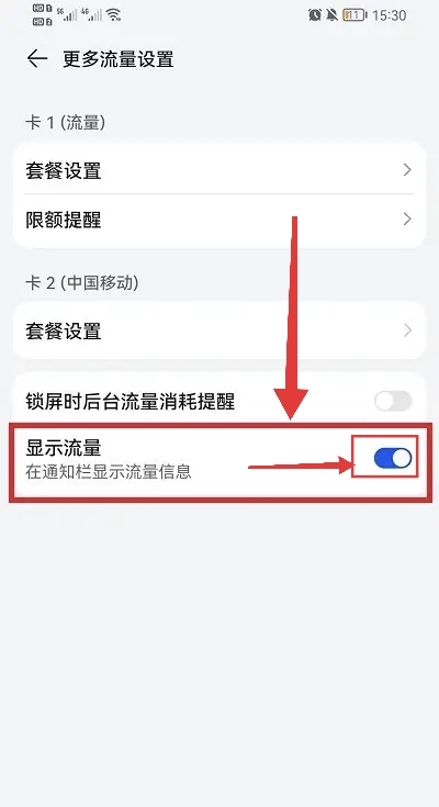 4.最后进入到更多流量设置页面后,点击关闭【显示流量】右侧按钮即可了。