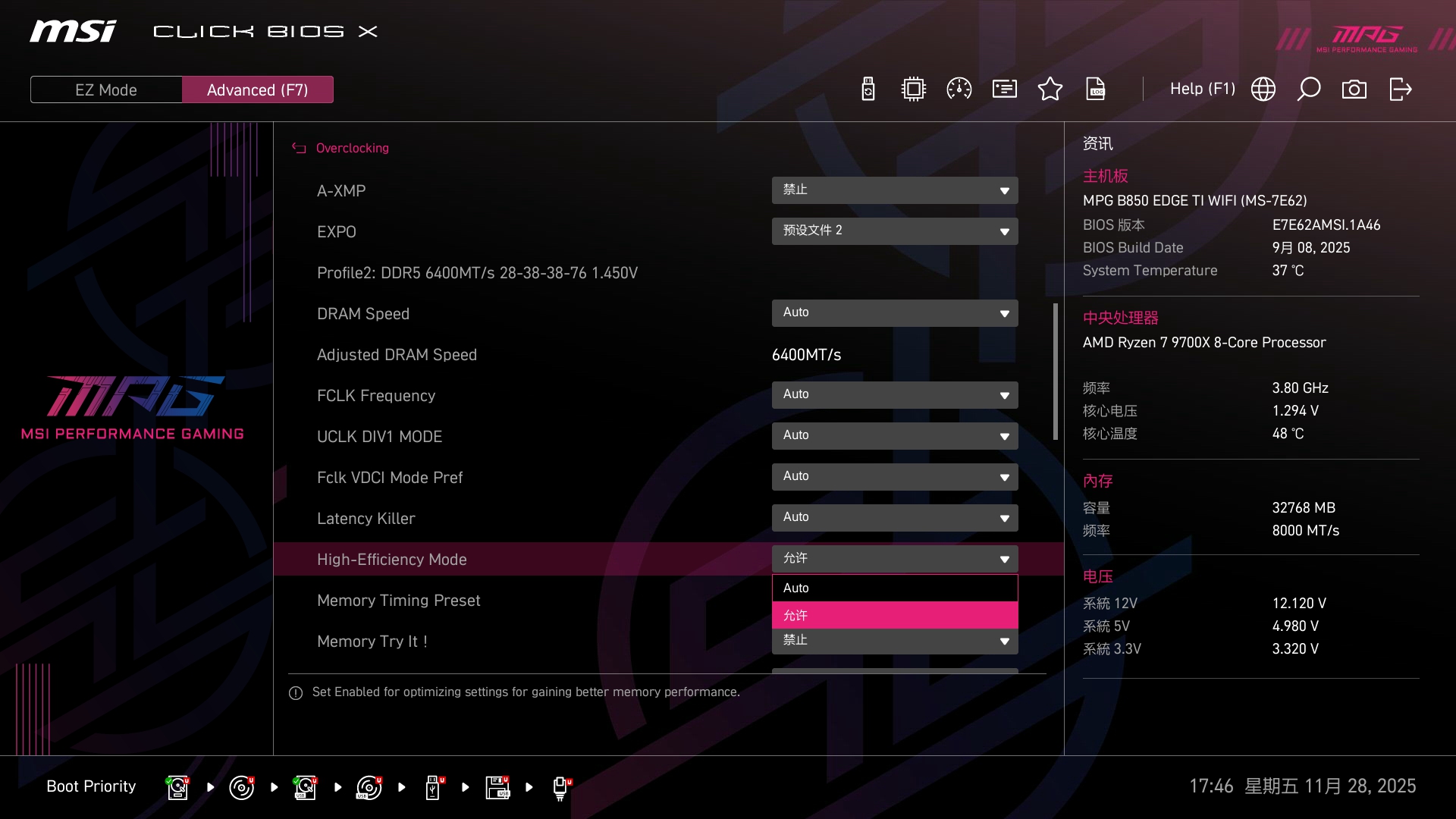 ▲ High-Efficiency Mode 有多个档位,对于标准开启 EXPO 的用户来说,可以试试爆天香,有着非常出色的效果!