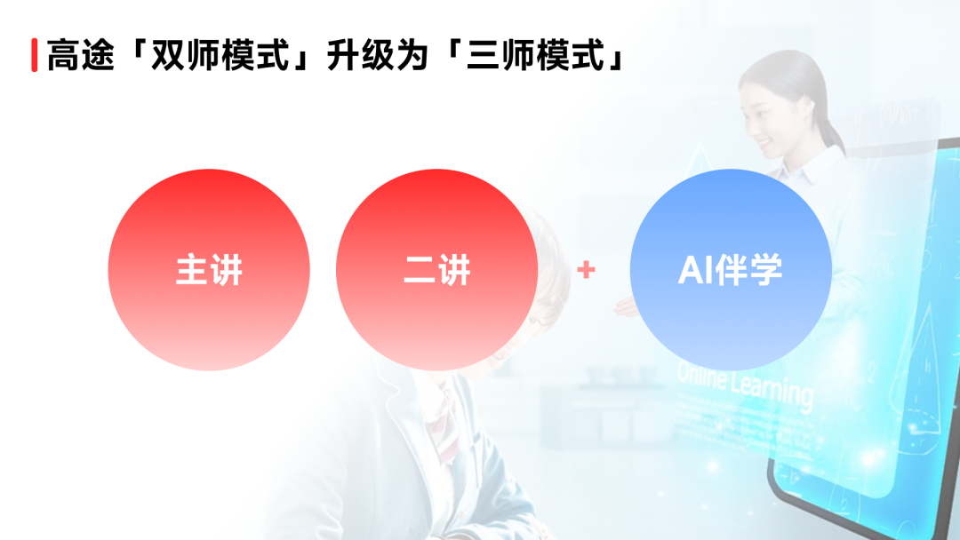 在此基础上,高途提出“名师+二讲+AI伴学”的“三师教学模式”,AI在教学、教研中的深度融合,打通教育全链路,从“人找服务”到“服务找人”的转变。