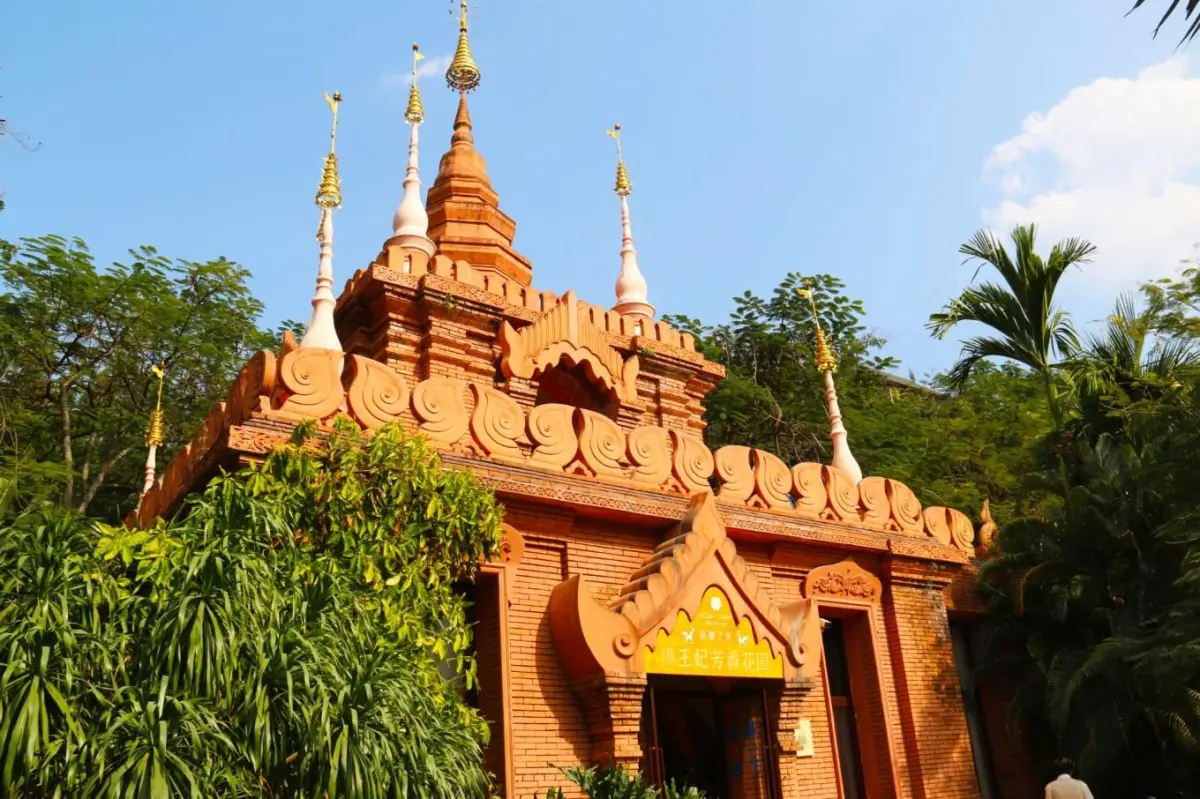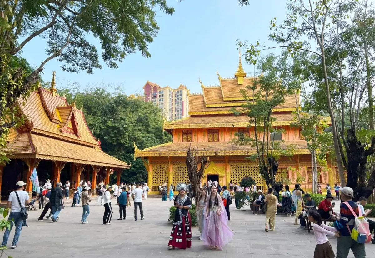 公园内有典型傣族少数民族王宫建筑风格,金碧辉煌,非常耀眼,整个建筑装饰也非常豪华。