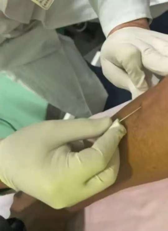 谁知道针一扎进去,他立马变了脸色,嘴里喊着"太酸爽了"。