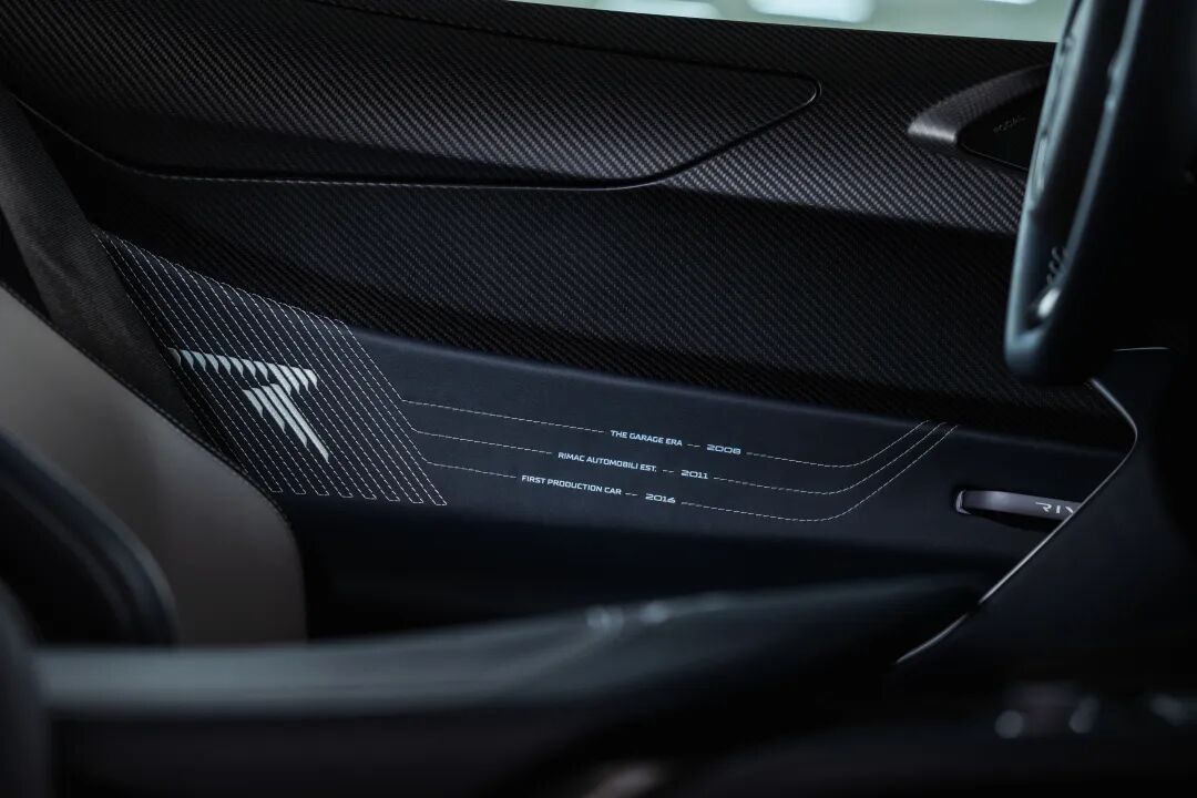 中控台饰板为哑光黑色碳纤维,车内开关装置则为深灰色阳极氧化处理。公司负责人马特·锐马克以及部分核心团队成员的签名被永久镌刻在车门踏板上。