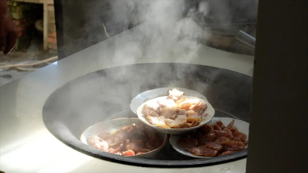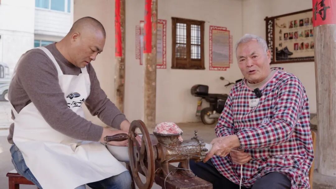 岁月在指缝间流淌,从怕见不到太阳的忧虑,到如今安心沐浴山风的等待。那个承载记忆的灌肠机,在吱呀作响的转轴声中,转走了过去阴晴不定的忐忑,转来了四代人掌心传承的温度。香肠在山风与阳光里慢慢酝酿出风味,就像这家人的故事,在时光里慢慢沉淀出深情。当孙女的手也握住这传承的脉络,我们知道,有些东西从未被天气左右——那是一份日头般恒暖的守护,和山风般绵长的挂念。