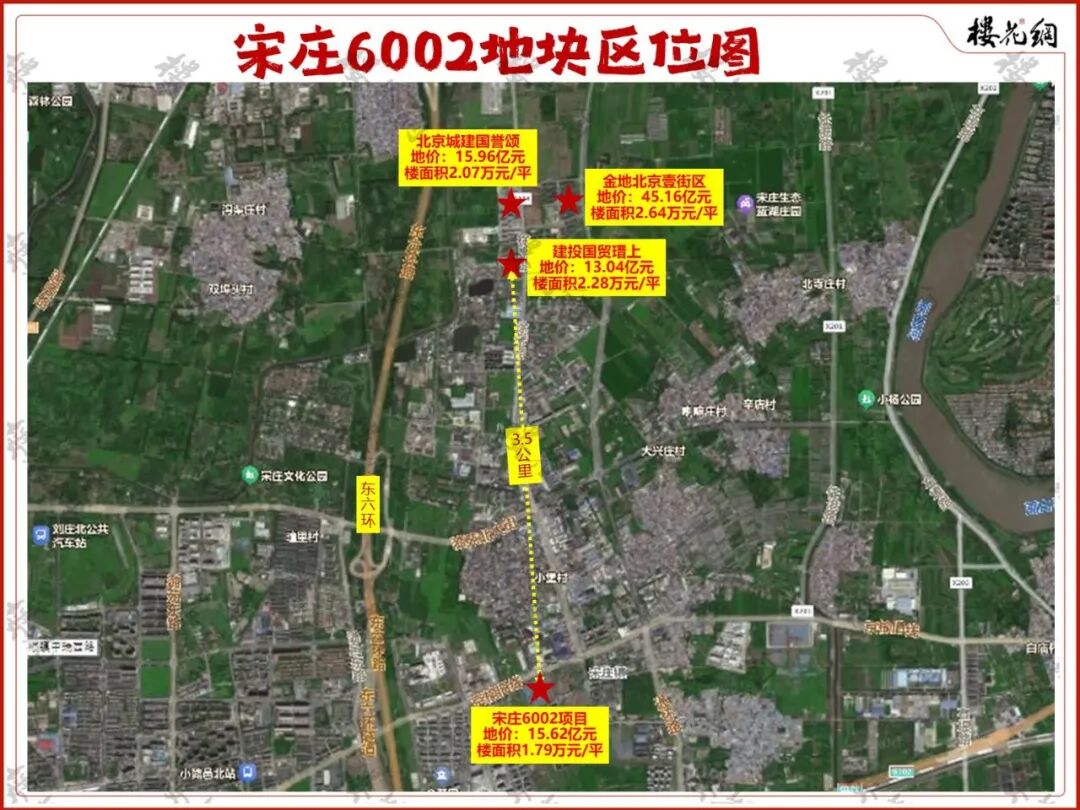 6002地块北边约3.5公里,是建投国贸瑨上,再往北边不远,便是北京城建国誉颂和金地北京壹街区。