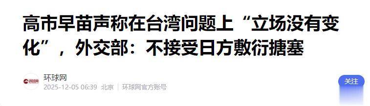 高市早苗嘴上再怎么“澄清”,中国都不买账,外交部在12月4日罕见用上了“绝不接受”这种重量级词汇,这说明北京已经把这事当成高等级风险来看待。